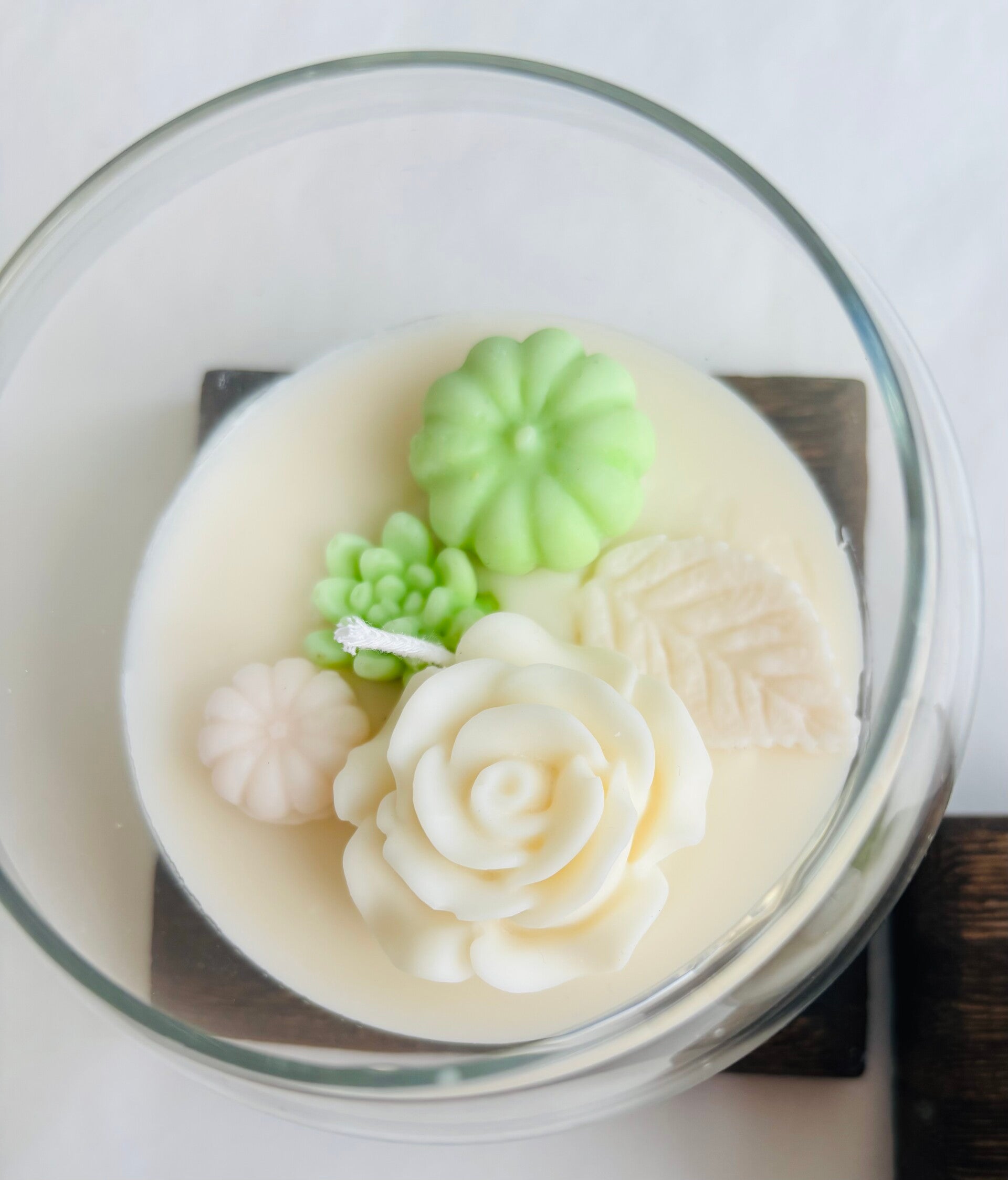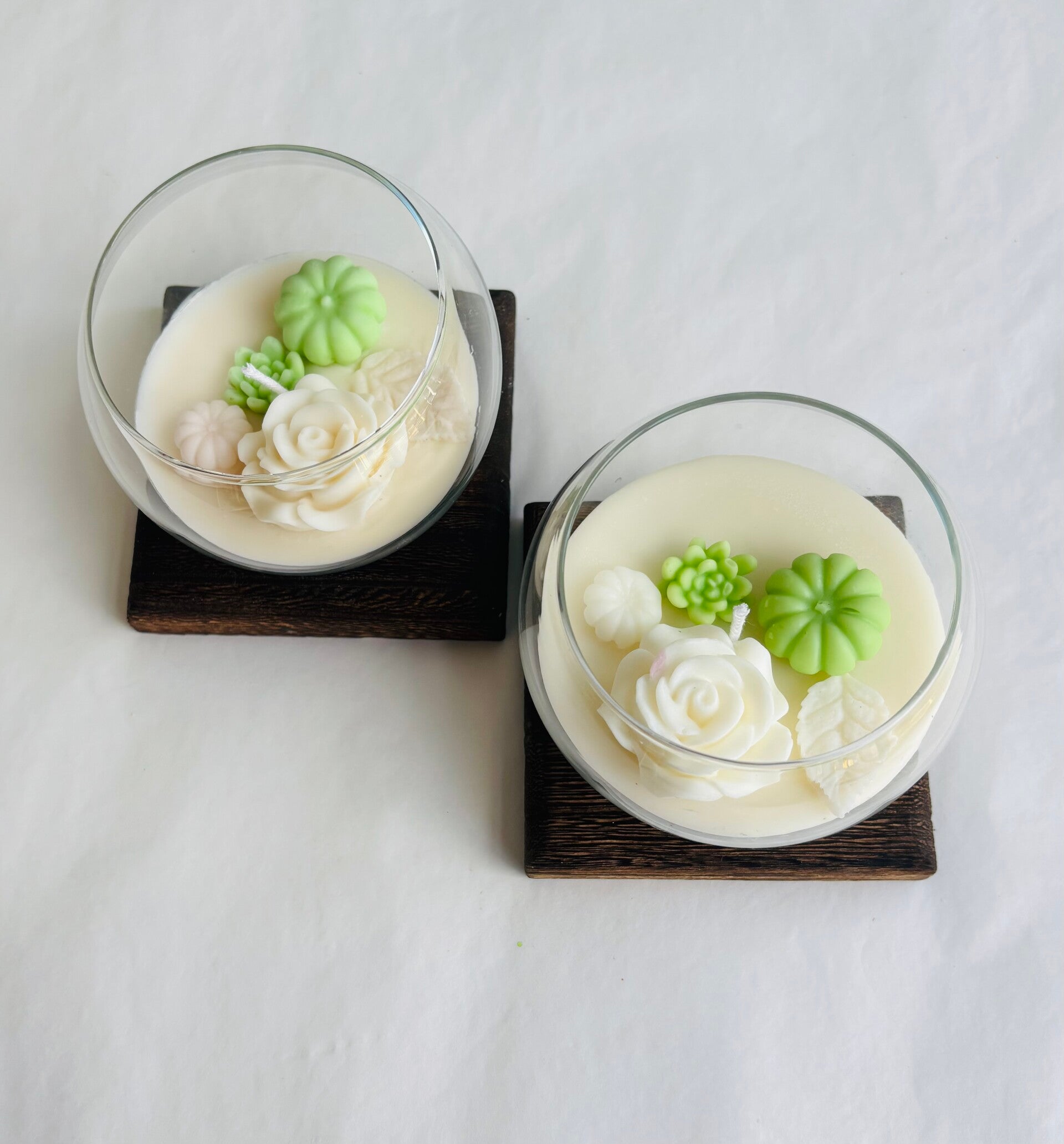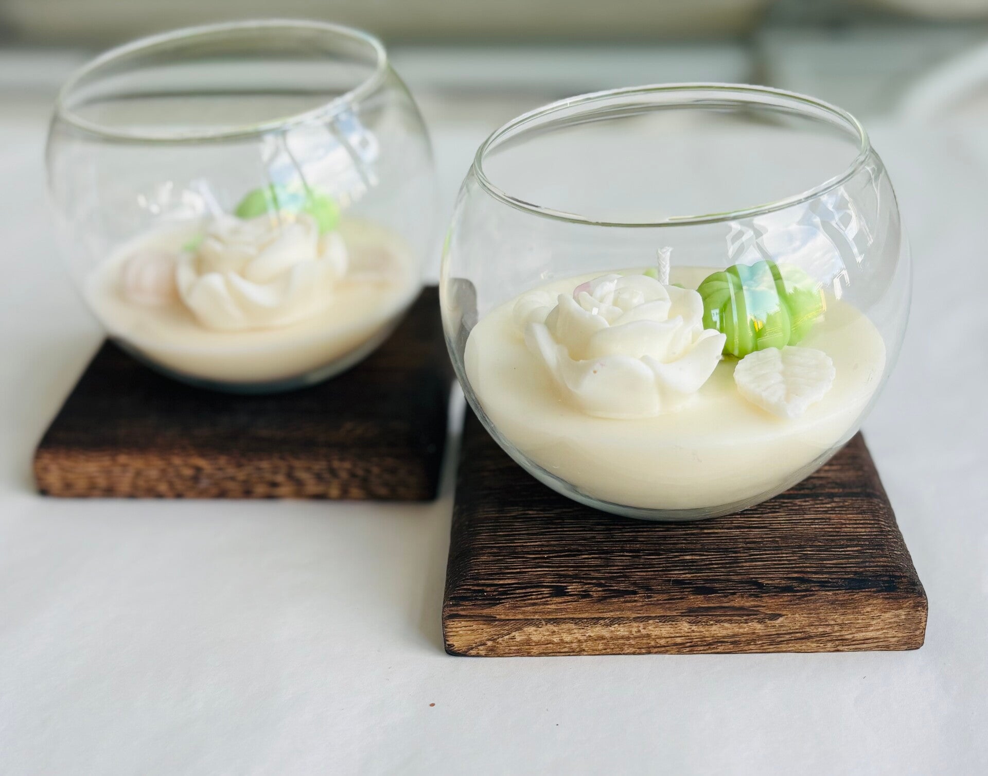 Laat je zintuigen ontwaken met Citrus bloemenpracht, een handgemaakte kaars die frisheid en elegantie samenbrengt. De geur is een levendige Citrus melange die je ruimte opfrist en energie geeft. De kaars is gegoten in een helder glazen houder en versierd met verfijnde bloemvormige details in zacht witte en groene tinten die doen denken aan een bloeiende lentetuin. Ze rust op een houten onderzetten, wat een warme, natuurlijke basis biedt en geheel een rustieke charme geeft.