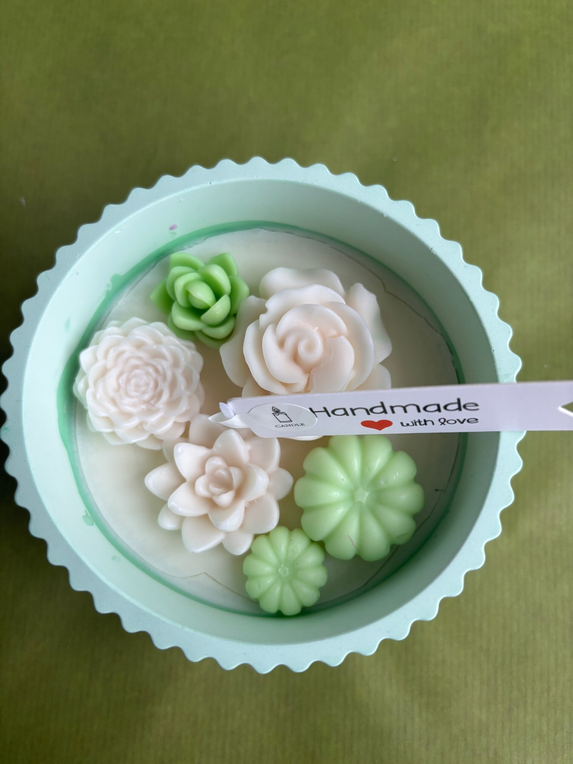 Stijlvolle kaars in groene aardewerken pot diameter 10 cm met frisse wit groene was.Verspreidt een opwekkende lemongrassgeur voor een zomerse, energieke sfeer in huis.